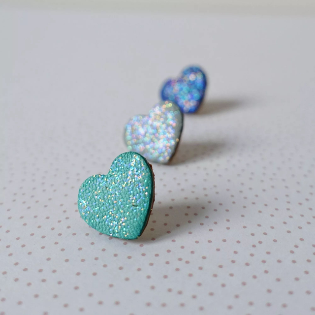 3 petits pin's fait à la main en cuir, habillés d'une jolie robe iridescente !